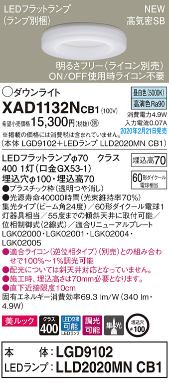 Panasonic ¥À¥¦¥ó¥é¥¤¥È XAD1132NCB1