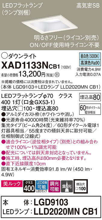 Panasonic ¥À¥¦¥ó¥é¥¤¥È XAD1133NCB1