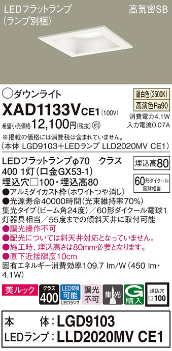 Panasonic ¥À¥¦¥ó¥é¥¤¥È XAD1133VCE1