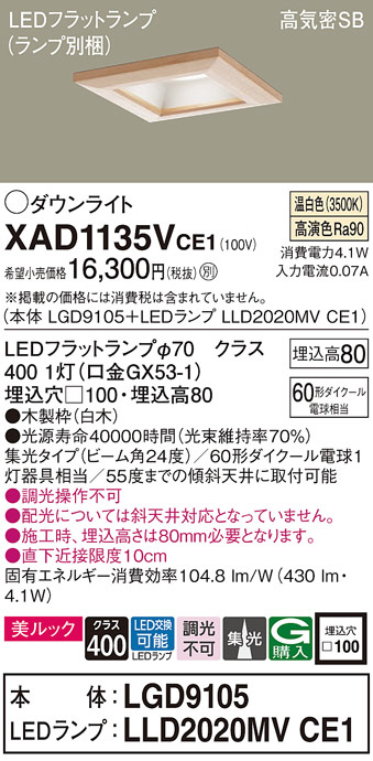 Panasonic ¥À¥¦¥ó¥é¥¤¥È XAD1135VCE1