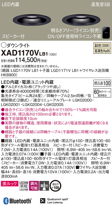 Panasonic ¥À¥¦¥ó¥é¥¤¥È XAD1170VLB1