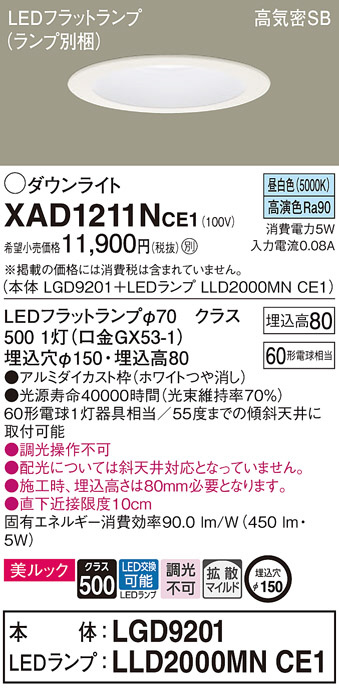 Panasonic ¥À¥¦¥ó¥é¥¤¥È XAD1211NCE1