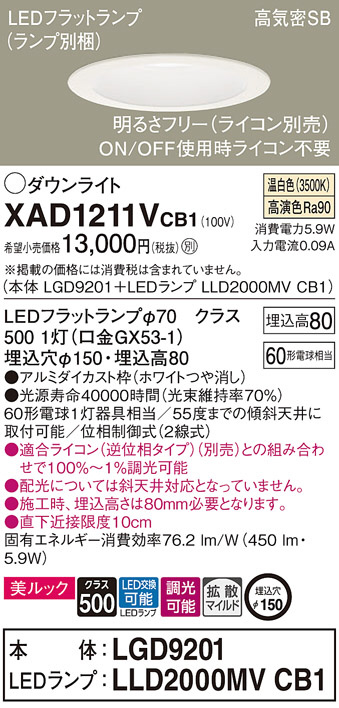 Panasonic ¥À¥¦¥ó¥é¥¤¥È XAD1211VCB1