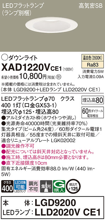 Panasonic ¥À¥¦¥ó¥é¥¤¥È XAD1220VCE1