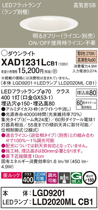 Panasonic ¥À¥¦¥ó¥é¥¤¥È XAD1231LCB1