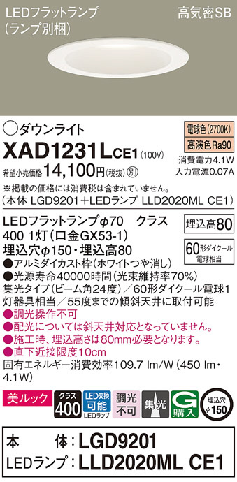 Panasonic ¥À¥¦¥ó¥é¥¤¥È XAD1231LCE1