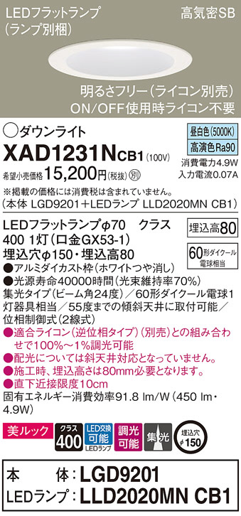Panasonic ¥À¥¦¥ó¥é¥¤¥È XAD1231NCB1