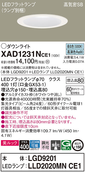 Panasonic ¥À¥¦¥ó¥é¥¤¥È XAD1231NCE1