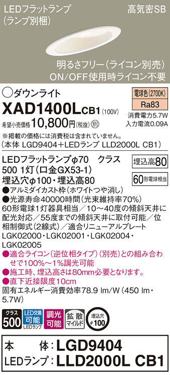 Panasonic ¥À¥¦¥ó¥é¥¤¥È XAD1400LCB1