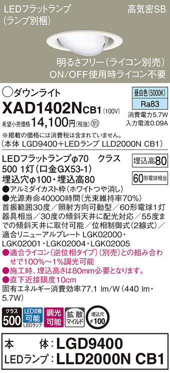 Panasonic ¥À¥¦¥ó¥é¥¤¥È XAD1402NCB1