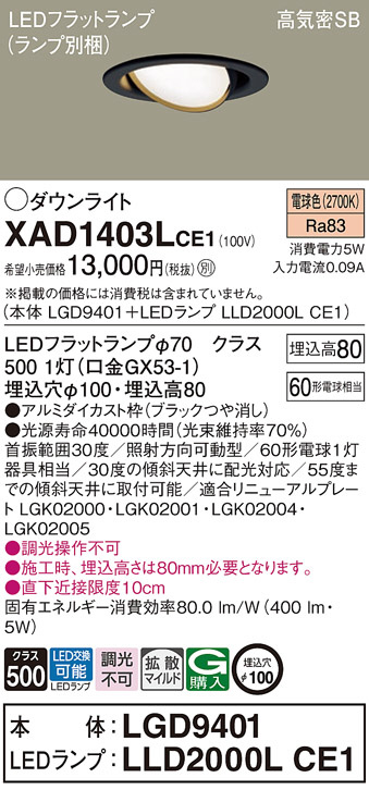 Panasonic ¥À¥¦¥ó¥é¥¤¥È XAD1403LCE1