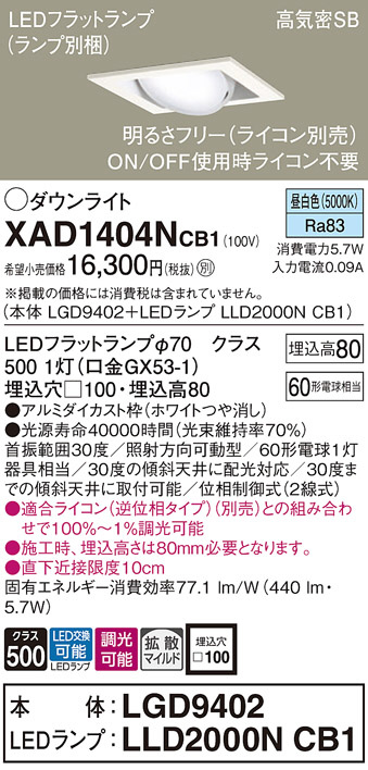 Panasonic ¥À¥¦¥ó¥é¥¤¥È XAD1404NCB1