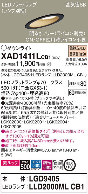 Panasonic ¥À¥¦¥ó¥é¥¤¥È XAD1411LCB1