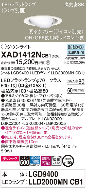 Panasonic ¥À¥¦¥ó¥é¥¤¥È XAD1412NCB1