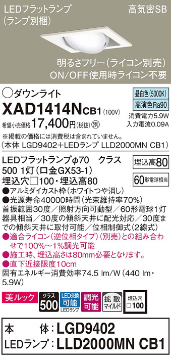 Panasonic ¥À¥¦¥ó¥é¥¤¥È XAD1414NCB1
