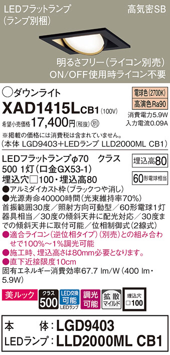 Panasonic ¥À¥¦¥ó¥é¥¤¥È XAD1415LCB1
