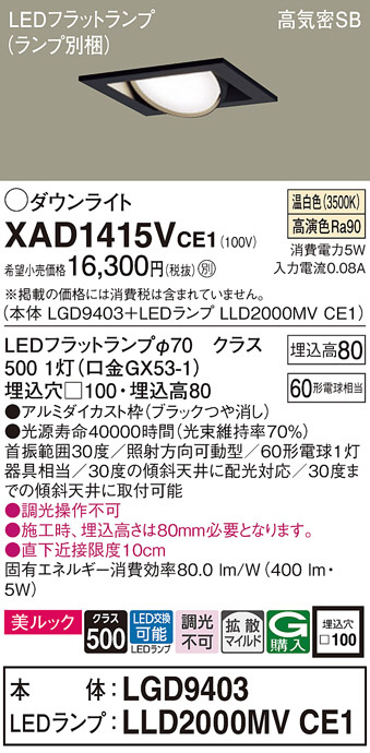 Panasonic ¥À¥¦¥ó¥é¥¤¥È XAD1415VCE1