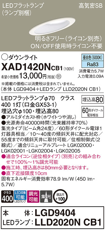 Panasonic ¥À¥¦¥ó¥é¥¤¥È XAD1420NCB1