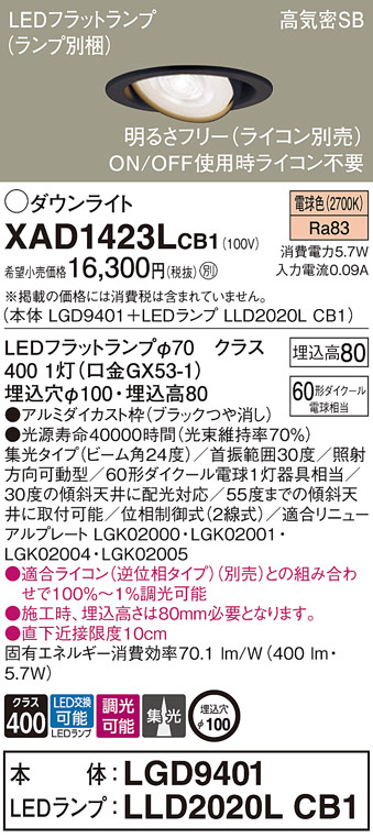 Panasonic ¥À¥¦¥ó¥é¥¤¥È XAD1423LCB1