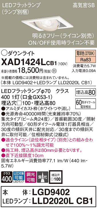 Panasonic ¥À¥¦¥ó¥é¥¤¥È XAD1424LCB1