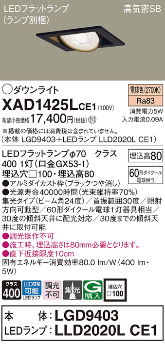 Panasonic ¥À¥¦¥ó¥é¥¤¥È XAD1425LCE1
