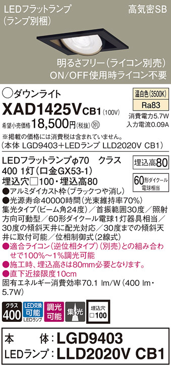 Panasonic ¥À¥¦¥ó¥é¥¤¥È XAD1425VCB1