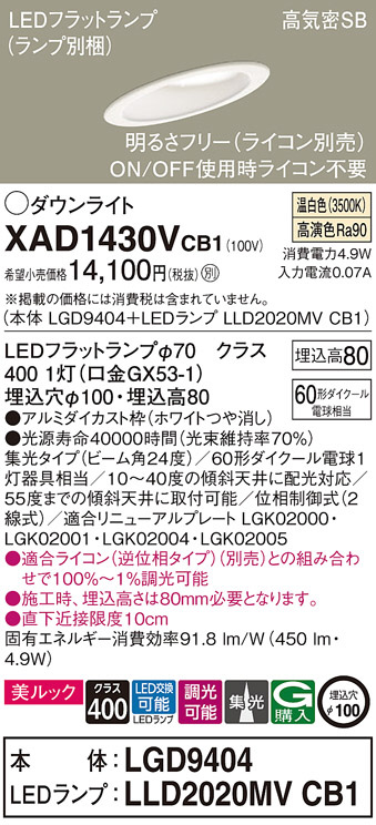 Panasonic ¥À¥¦¥ó¥é¥¤¥È XAD1430VCB1