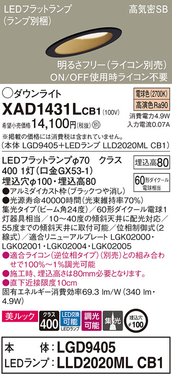 Panasonic ¥À¥¦¥ó¥é¥¤¥È XAD1431LCB1