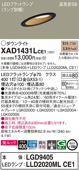 Panasonic ¥À¥¦¥ó¥é¥¤¥È XAD1431LCE1