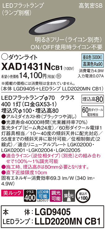 Panasonic ¥À¥¦¥ó¥é¥¤¥È XAD1431NCB1