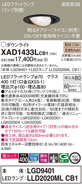 Panasonic ¥À¥¦¥ó¥é¥¤¥È XAD1433LCB1