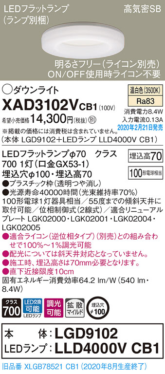 Panasonic ¥À¥¦¥ó¥é¥¤¥È XAD3102VCB1