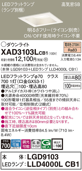 Panasonic ¥À¥¦¥ó¥é¥¤¥È XAD3103LCB1