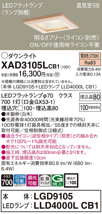 Panasonic ¥À¥¦¥ó¥é¥¤¥È XAD3105LCB1