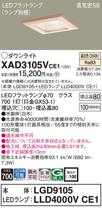 Panasonic ¥À¥¦¥ó¥é¥¤¥È XAD3105VCE1