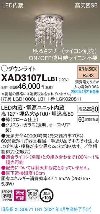 Panasonic ¥À¥¦¥ó¥é¥¤¥È XAD3107LLB1