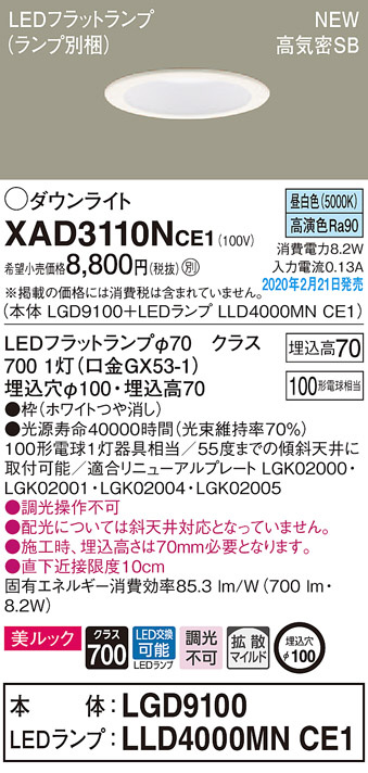 Panasonic ¥À¥¦¥ó¥é¥¤¥È XAD3110NCE1