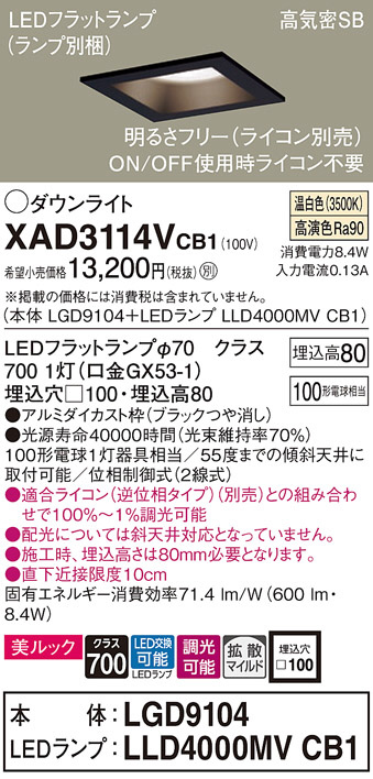 Panasonic ¥À¥¦¥ó¥é¥¤¥È XAD3114VCB1