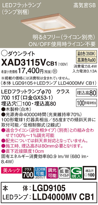 Panasonic ¥À¥¦¥ó¥é¥¤¥È XAD3115VCB1