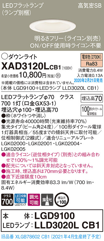 Panasonic ¥À¥¦¥ó¥é¥¤¥È XAD3120LCB1