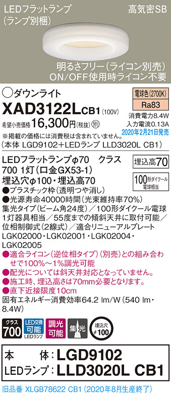 Panasonic ¥À¥¦¥ó¥é¥¤¥È XAD3122LCB1