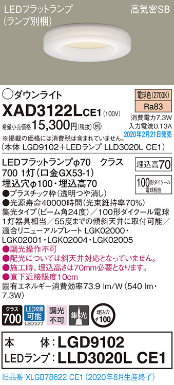 Panasonic ¥À¥¦¥ó¥é¥¤¥È XAD3122LCE1