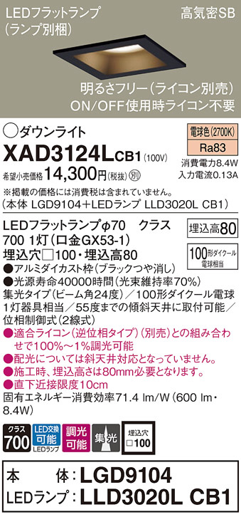 Panasonic ¥À¥¦¥ó¥é¥¤¥È XAD3124LCB1