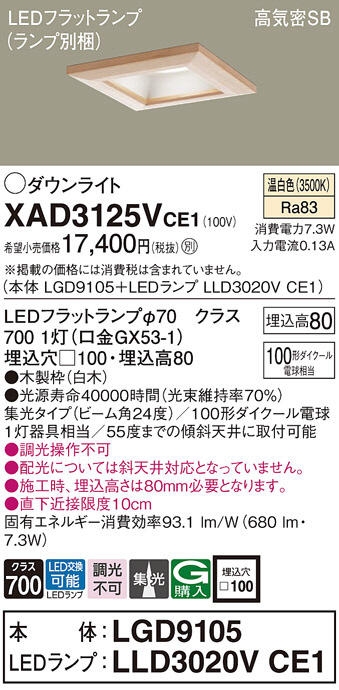 Panasonic ¥À¥¦¥ó¥é¥¤¥È XAD3125VCE1