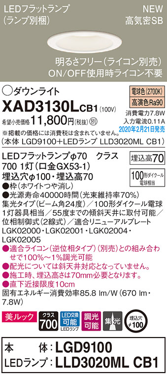Panasonic ¥À¥¦¥ó¥é¥¤¥È XAD3130LCB1