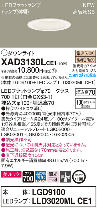 Panasonic ¥À¥¦¥ó¥é¥¤¥È XAD3130LCE1