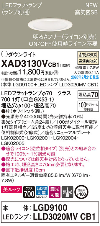 Panasonic ¥À¥¦¥ó¥é¥¤¥È XAD3130VCB1