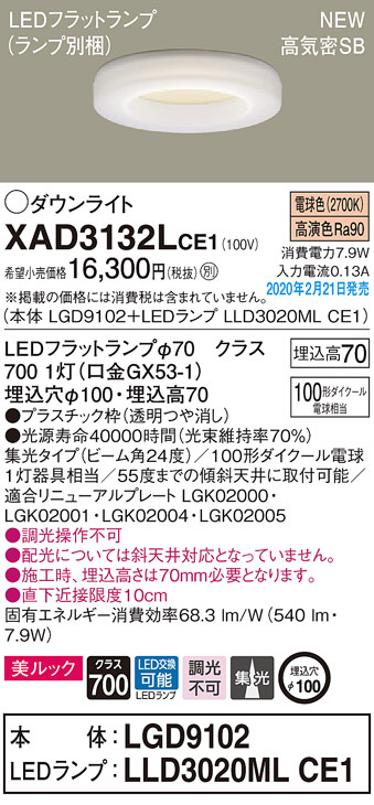 Panasonic ¥À¥¦¥ó¥é¥¤¥È XAD3132LCE1