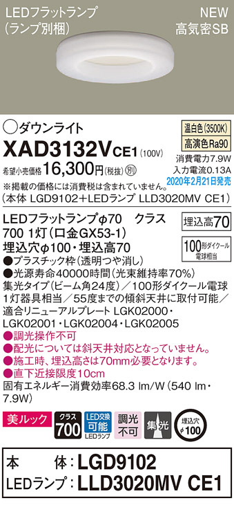 Panasonic ¥À¥¦¥ó¥é¥¤¥È XAD3132VCE1