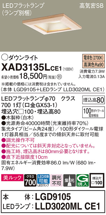 Panasonic ¥À¥¦¥ó¥é¥¤¥È XAD3135LCE1